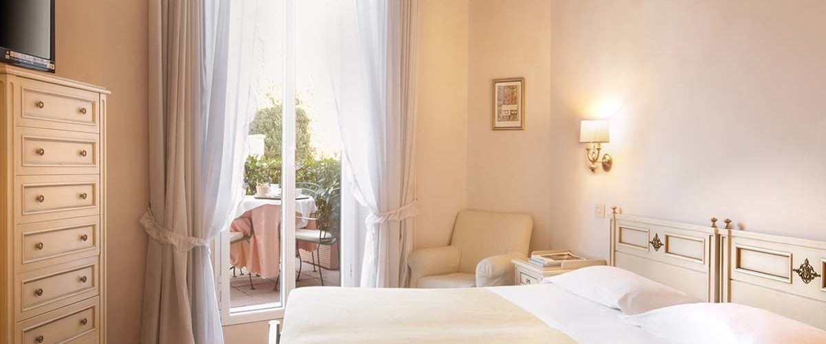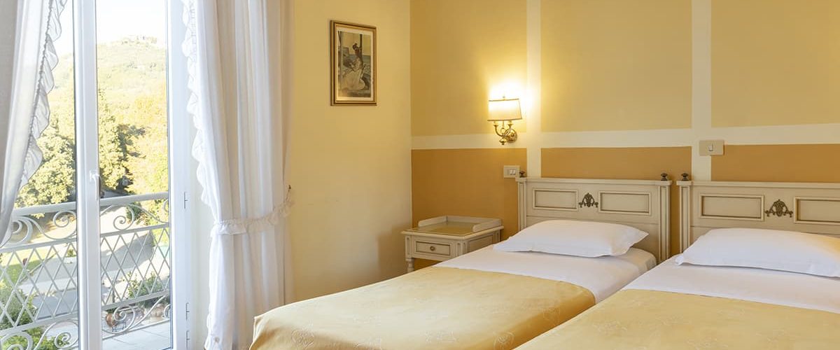 With a pleasant view of the hills or the green garden and swimming pool, the Classic room welcomes you in a warm Art Nouveau atmosphere.
